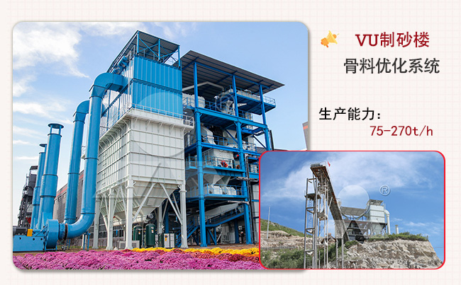 VU制砂樓就是干法制砂系統(tǒng),采用高度集約的塔樓式全封閉布置,集制砂、粒型優(yōu)化、石粉控制、級配調整、含水率控制、環(huán)保處理于一體,不但明顯提高了生產(chǎn)效率,更實現(xiàn)了機制砂粒型、級配、含粉量等各項指標的提升,使機制砂性能媲美天然砂。