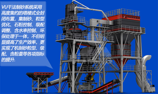 1.通過VU系統(tǒng)制砂可以獲得精品砂; (VSI6XZ整形制砂主機)