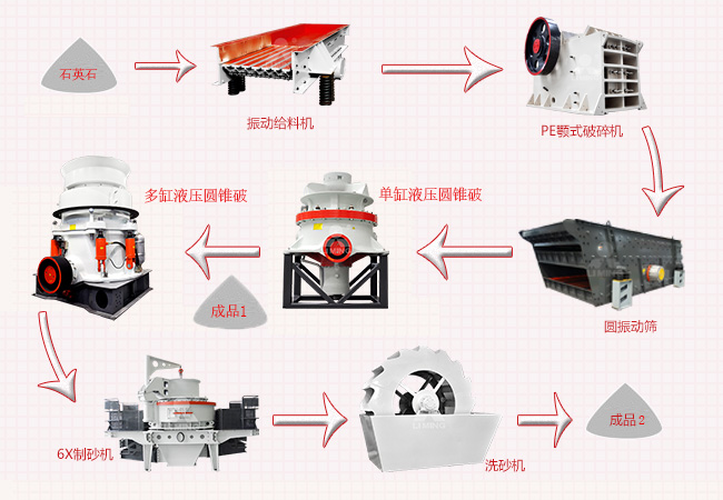 經典的石英石制砂生產線流程圖